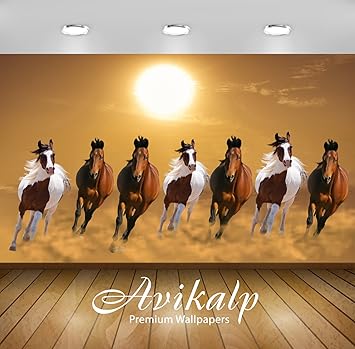 Include White 7 Horse Running Natural Vastu Painting Wallpaper Vinyl 30x18 Inches Multicolour Amazon In Home Kitchen