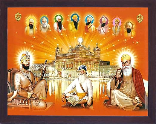 Amazon Com Handicraft Store Baba Deep Singh With Other Ten Guru S Outside Amritsar Temple A Sikh Painting Poster With Frame For Sikh Family Home Office Gift Purpose Sikh Gurudwara