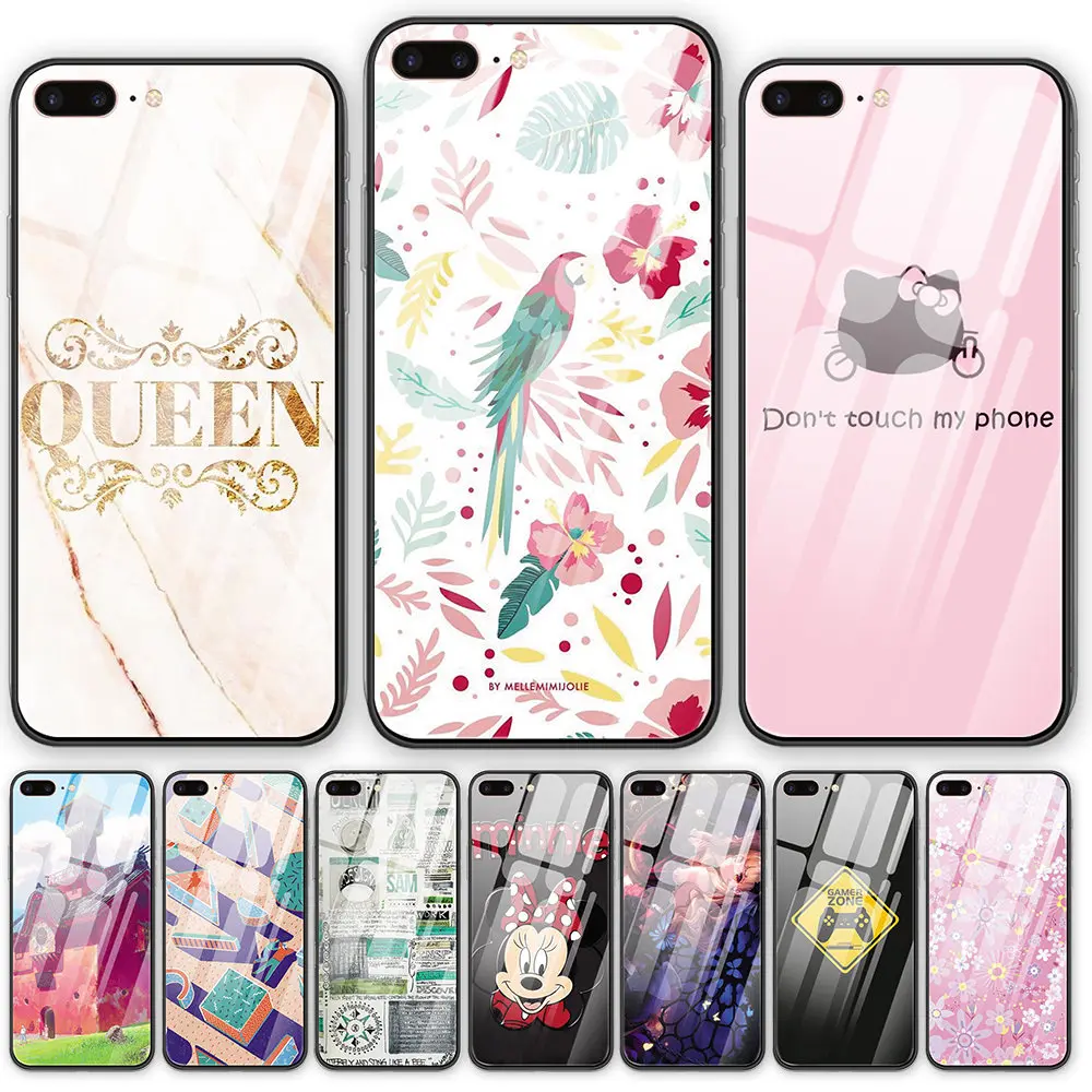 Cartoon Wallpaper Tempered Glass Back Cover Phone Case For Iphone 5 5s Se 6 6s 7 8 Plus X Xs Xr Xsmax 11 Pro Max Funny Shell Half Wrapped Cases Aliexpress