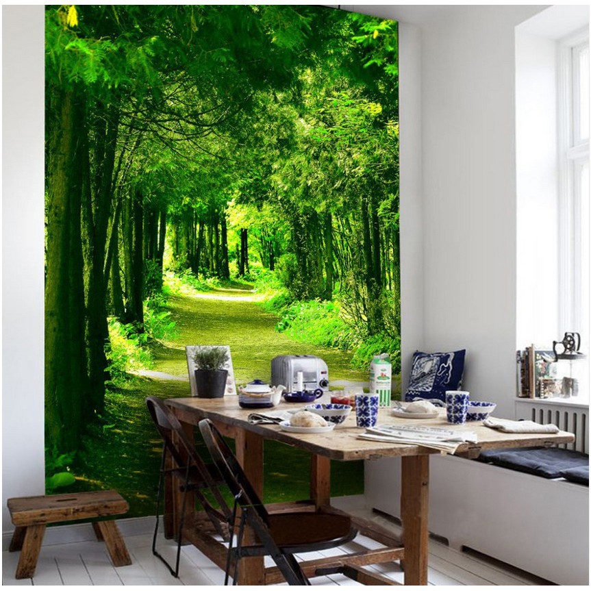 Hd Green Forest Trail Restaurant Corridor Background Wall Paper Mural Shopee Singapore