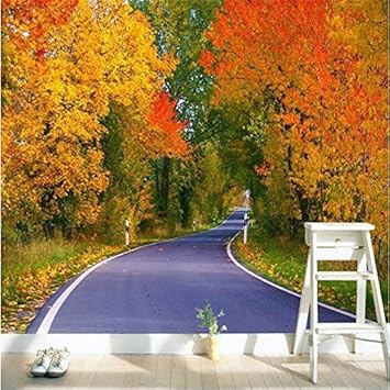 Ohcde Dheark 3d Large Wall Mural Wallpaper Hd Red Maple Leaf Highway Road Beautiful Landscape Backdrop Custom Silk Photo Wall Paper 350cmx245cm 137 8 By 96 5 In Wallpaper Amazon Canada