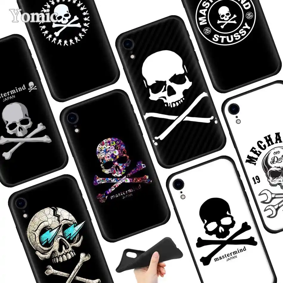 Black Skull And Bone Artwork Mastermind Japan Iphone 8 Iphone 7 Logo Skull Label Fashion Sticker Png Pngwing