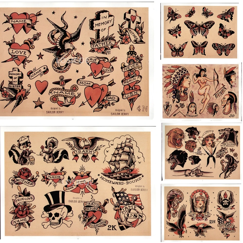 Sailor Jerry Tattoo Flash Poster Print 24 X36 Free Shipping In U S Sailor Jerry Tattoo Flash Sailor Jerry Tattoos Sailor Tattoos
