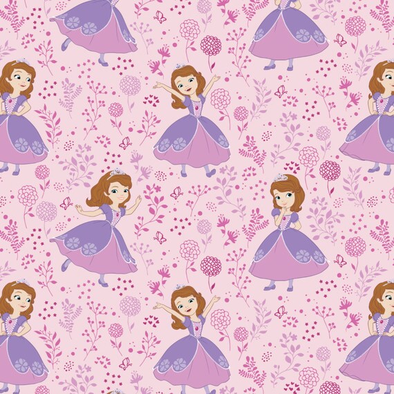Disney Fabric Sofia The First Fabric Meadow In Light Pink From Etsy